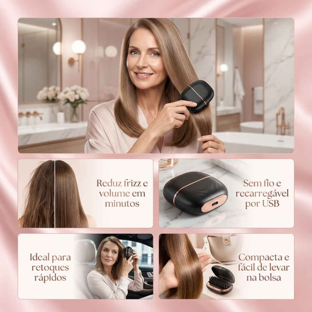 Sua nova aliada para cabelo alinhado, bonito e sedoso em minutos.